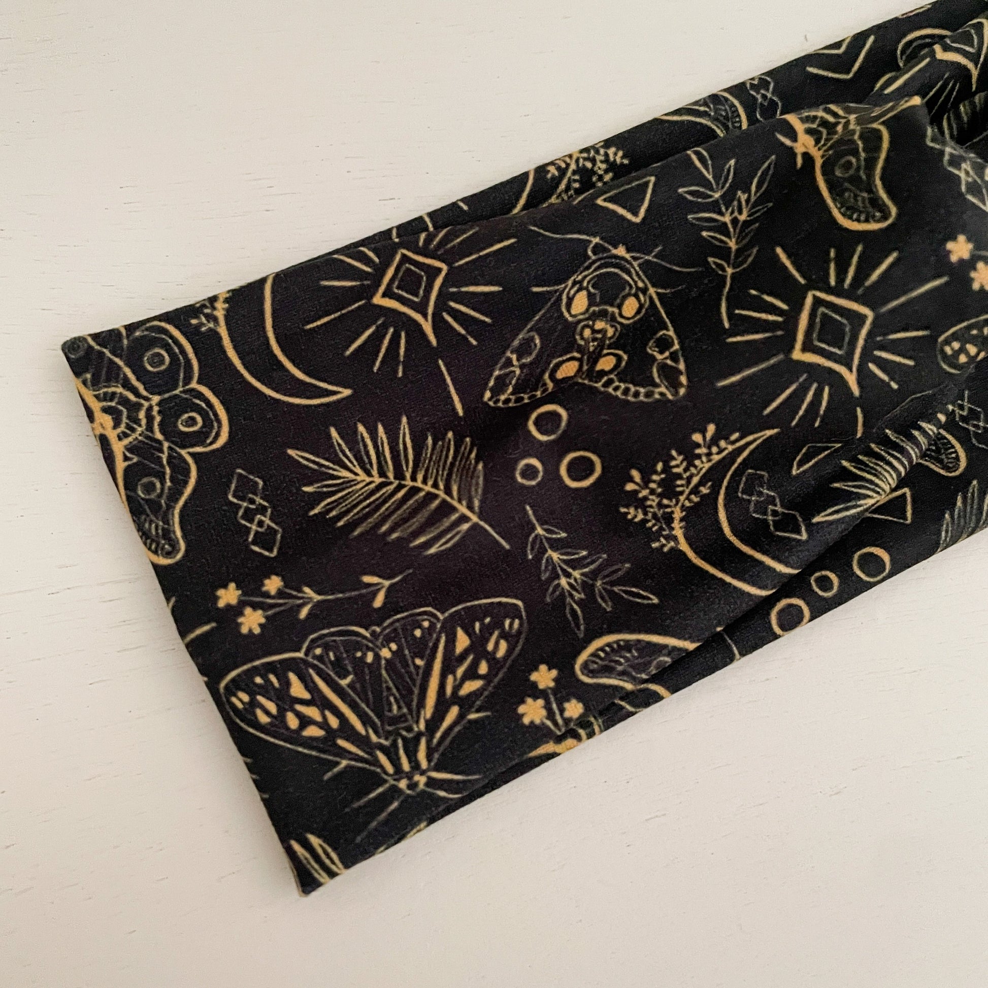 This headband has a knotted look that you can wear in the front, back, side, or anywhere you like best. Headbands fit the average size and stretch to ensure it will fit and be comfortable for long wear. The width is about 3" and circumference is 20-21". Made with the softest fabric that you'll fall in love with.